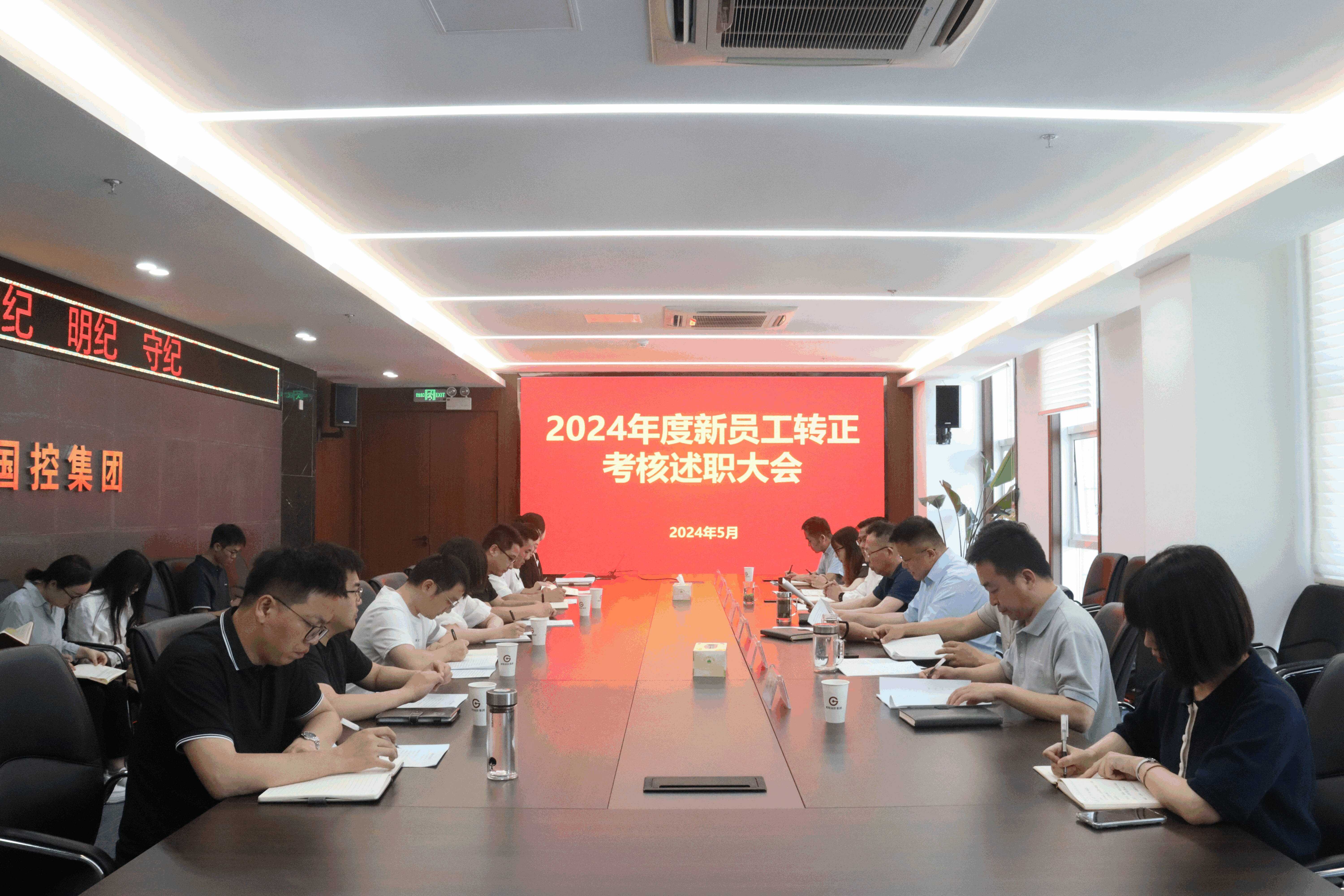 5月22日上午,在集团16楼会议室召开2024年度新员工转正考核述职大会。会议由集团党委委员、副总经理于革委主持,集团全体员工参会。本次会议对新入职8名员工试用期期间的表现与工作情况进行考核定级。