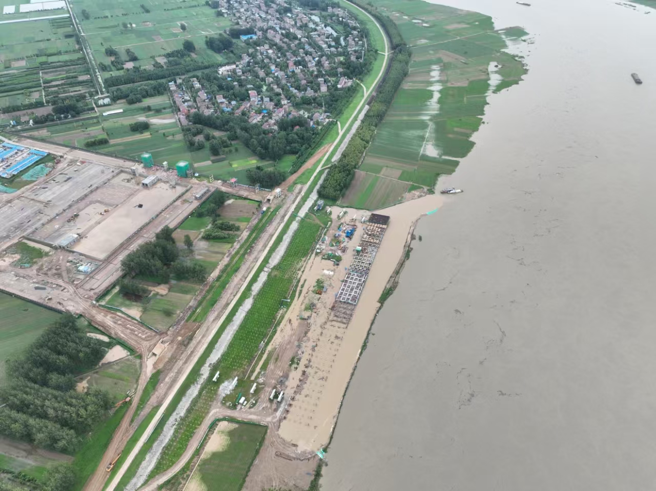 近日,五河县城南综合码头一期工程港口码头后方陆域和前方码头施工正在加快推进中。
