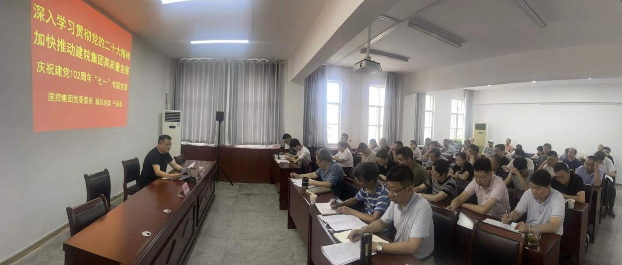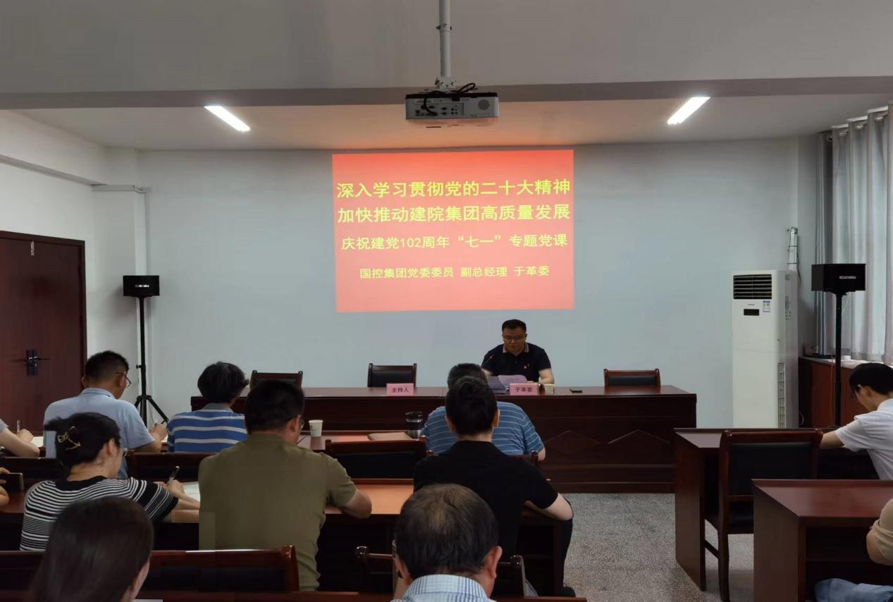 6月29日下午,集团党委委员、副总经理于革委赴建院集团调研座谈并讲授主题教育专题党课。建院集团执行董事、总经理凌建祥接待并主持会议。