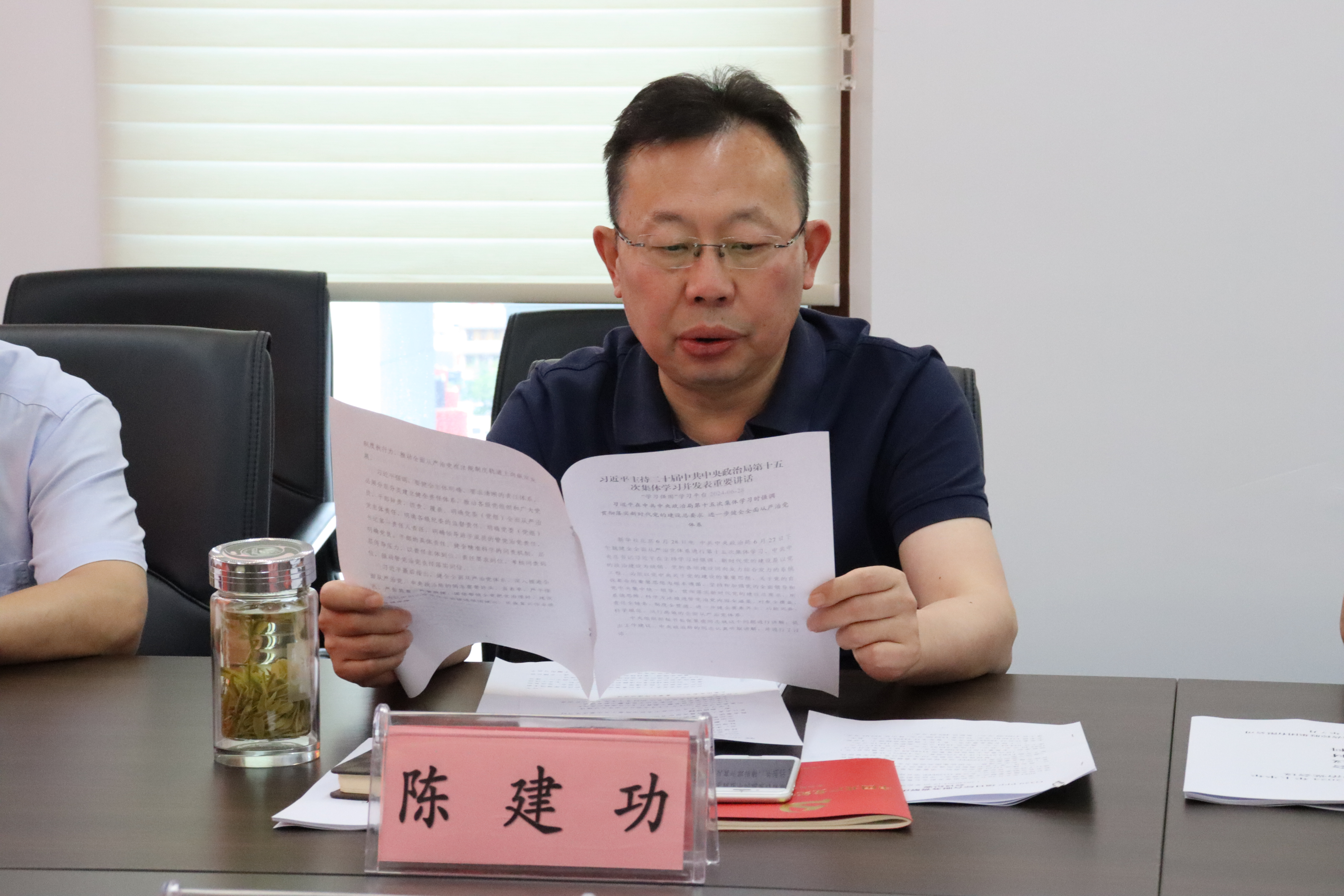 集团党委书记、董事长陈建功听取各单位党组织书记关于2024年上半年全面从严治党工作汇报,并作总结讲话。