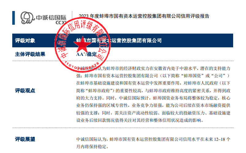 2023年94日,经中诚信国际信用评级有限公司评定,BEVITOR·伟德国际再次成功获评AA+主体信用评级,评级展望为稳定,时效期为一年。这是BEVITOR·伟德国际集团继202285日获得东方金诚国际信用评估有限公司评定的AA+主体信用评级后,再次评为AA+级信用主体,实现了AA+主体信用“双评级”。